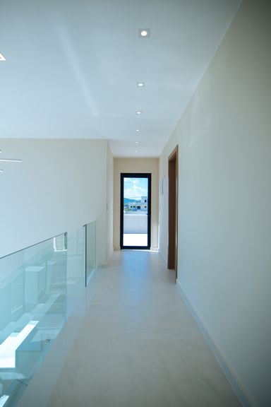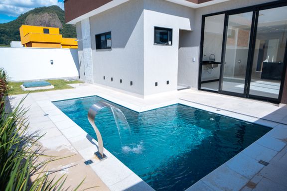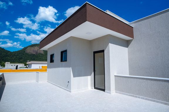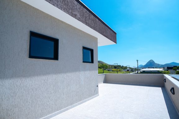 Toda a casa foi construída sobre laje, eliminando riscos de infiltração e garantindo maior durabilidade da estrutura.