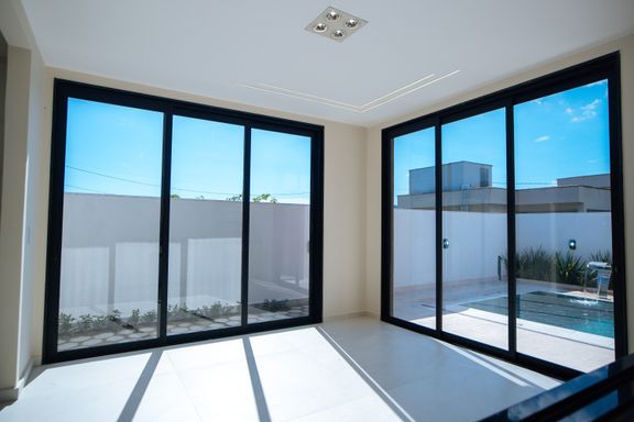 Portas em esquadrias de alumínio preto